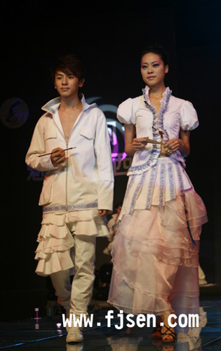 作品:《行走的花园》 蟳浦女是美丽的,她的美在于头上的“小花园”,洛可可是奢华的,当奢华不经意间渗入服装的每个细节,那种美就是“清水出芙蓉,天然去雕饰”的美。蟳浦女服饰风格与洛可可风格的结合便有了“行走的花园”…… (记者 林芳斌 文/图) 转自6月18日福建东南新闻网:http://www.fjsen.com/fujian/2009-06/18/content_724598.htm |