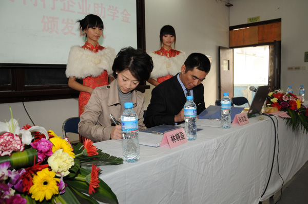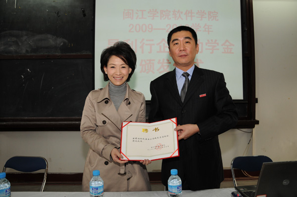 12月22日上午,全球最大手套生产商——香港昌利行董事林志权先生及其夫人、董事长林晓盈女士、行政部经理刘小琴女士,香港新邦集团董事长高培新先生一行来到软件学院,参加2009-2010学年昌利行企业助学金颁发仪式。会上,昌利行与软件学院继续签订了捐资助学、全面合作的有关协议,软件学院特聘“2010香港杰出青年企业家”林晓盈女士为客座教授并颁发了聘书。