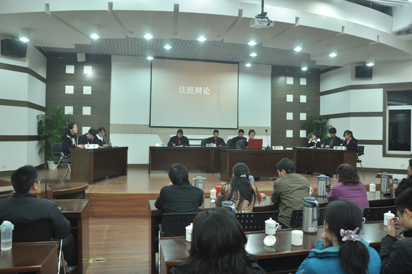 为了锻炼法律专业学子的法律素养,提供一个认识法律、了解法庭的机会和学以致用的舞台,由法律系法学教研室主办、法律协会承办、法律系团委协办的模拟法庭公演活动于2010年12月29日在我校行政楼学术报告厅举办。本次活动由法律系教研室主任陈峰冰、法律系教研室副主任李宁担任指导老师,法律系党总支书记郭华、副主任张焕明、团委书记陈剑峰以及全体师生出席了本次公演。