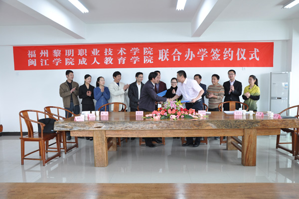 经过前期洽谈准备工作,4月7日,成教院与福州黎明职业技术学院联合办学签约仪式在黎明职业技术学院福屿校区举行。成教院院长黄鸿鸿、副院长林庆,以及黎明职业技术学院执行董事长王苏华女士、副院长郑星龙等出席仪式。 王苏华女士在签约仪式上指出,此次联合办学是黎明职业技术学院提升办学层次,探索人才培养模式的一次有益尝试;双方密切联系,加强教学管理,优势互补、资源共享,力争将此次“握手”打造成省内本科院校与民办院校合作办学的范例。同时,她希望在此次联合办学的基础上,能够继续拓展合作思路,使双方的合作更加深入。林庆副院长在会上读解了双方的合作框架。 在诚挚热切的气氛中,黄鸿鸿院长、郑星龙副院长分别代表双方签署了合作办学协议。 此次合作对我校和高职院校在教学和人才培养方面起促进作用,有利于双方发挥各自优势,加强合作为海西社会经济建设培养出更多的人才。此举也标志着成教院探索“与高职对接”的人才培养模式迈出了坚实的一步。(成教院 潘国飞)