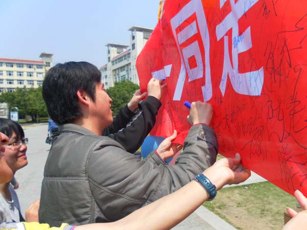 中国今年世界环境日的主题为“共建生态文明 共享绿色未来”,旨在唤起社会公众对环境与发展关系的清醒认识和自觉行动,强调生态文明、绿色发展理念,号召全社会行动起来为可持续发展之路作出贡献。由地理科学系团委发起的“一同走出绿色未来”的大型签名活动在我校文化墙进行,吸引了众多师生签名承诺。活动向同学们传递低碳生活理念,呼吁全校师生共建生态文明,共享绿色未来,希望每一位同学都成为环境保护的宣传者、实践者、推动者,共同打造绿色未来。(地理科学系团委   通讯员  许雪峰)