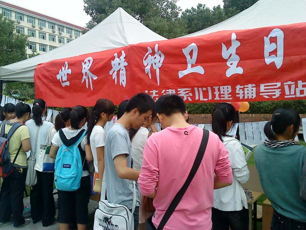 10月10日是世界精神卫生日,为了提高广大大学生对精神卫生重要性和迫切性的认识,普及精神卫生知识和精神疾病方面的知识,法律系心理辅导员站于10号当天开展“世界精神卫生日”活动。 此次活动内容丰富多彩,主要包括主题展板展示、“世界精神卫生日”相关知识有奖问答、心理测试游戏以及心理辅导站成员现场解答精神疾病方面的有关问题等等,活动得到了广大闽院学子的热情响应。同学们积极地参与到活动中来,踊跃咨询精神卫生方面的相关知识,争先回答“有奖问答”环节上的问题,还兴趣盎然地进行心理测试游戏,活动现场气氛十分浓厚,整个活动持续到傍晚才落下帷幕。 这次活动不仅让同学们了解了世界卫生日和精神疾病方面的相关知识,而且让同学们在今后的学习生活中遇到各种问题拥有一个端正的解决态度,避免产生精神方面的疾病,拥有一个健康快乐的大学生活起到良好作用。(法律系 卢祥超 张美玲 通讯员 陈薇怡)