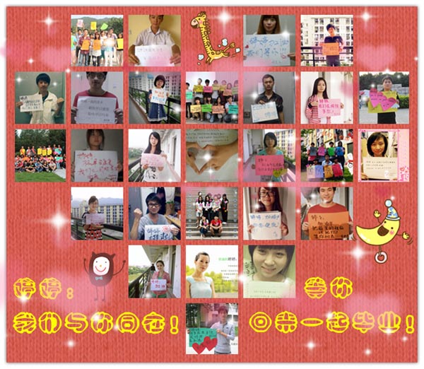 “Hi,再给我拍一张照片吧,刚才我那幅字画做得不够好,我又重做一张……”、“刚才那张照片采光不好,不够理想,我这里也要再拍一张……”。近日,在美术学院艺术楼、晨磬广场、宿舍里经常以看到美术学院的同学手举标语牌拍照。这是婷婷爱心接力群的同学们自发组织为王婷婷同学送去温馨祝福的万人爱心墙活动。