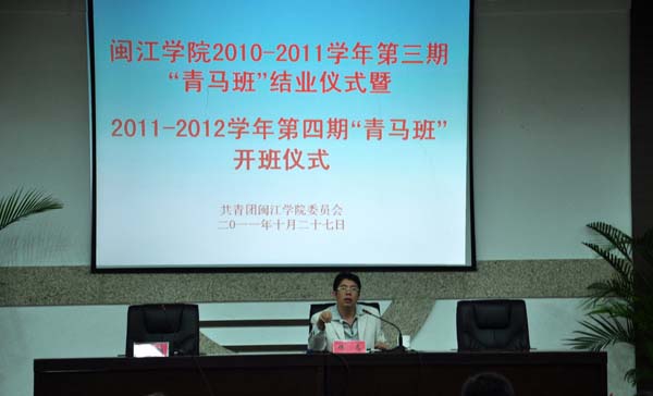 为深入学习贯彻胡锦涛总书记“七一”重要讲话精神,全面推进“青年马克思主义者培养工程”,加强我校学生干部队伍建设,提高学生干部的政治素养,传承和颂扬具有闽院特色的“青马班”精神,0月27日晚,由共青团美狮贵宾会ms092021委员会举办的2010-2011学年美狮贵宾会ms092021“青年马克思主义者培养工程骨干班”第三期结业仪式与第四期开班仪式在学术报告厅举行。仪式由校团委组织部部长黄晓明主持,校团委林忠书记应邀进行专题讲座。 黄晓明老师首先进行结业仪式致辞。他简要介绍了“青马班”的发展情况,同时对结业骨干分子取得的成绩给予了充分的肯定。第三期“青马班”班长沈素静进行了代表发言。随后,校团委林忠书记为40位结业骨干分子颁发了结业证书并合影留念。结业仪式不仅向新的青马班成员展示了青马风采,同时也鼓舞了他们继往开来,传承和发扬“青马”精神。 当晚,林忠书记结合自身多年的工作心得,围绕“团学骨干精英为什么学习,学习什么,如何学习”三个重点与同学们进行学习讨论。他指出“人学习的目的或是为了实现梦想或是为了生存,但必须要具备“健康力、关怀力、创新力、卓越力”四个基本素养以及“中文、英文、计算机、专业知识、战略、领导”六个核心能力。林忠书记还提倡年轻人,特别是团学干部要有像杨岳书记提出的“敢为、能为、有为”的精神,要有热情与激情去实践梦想。讲座最后,他与同学们分享了自己的座右铭“名字是父母给的,历史是靠自己去谱写的”,以此激励同学们,望他们在人生旅途上以永不放弃的态度,时时给自己的生命“上弦”。 随着第三期“青马班”优秀学员的毕业,第四期“青马班”学员也将在未来的一年以严谨的态度努力提高自我的思想觉悟与社会责任感,全力把自己打造成中国特色社会主义合格的建设者与接班人。 (校团委 陈心湉 通讯员 李宝秀)