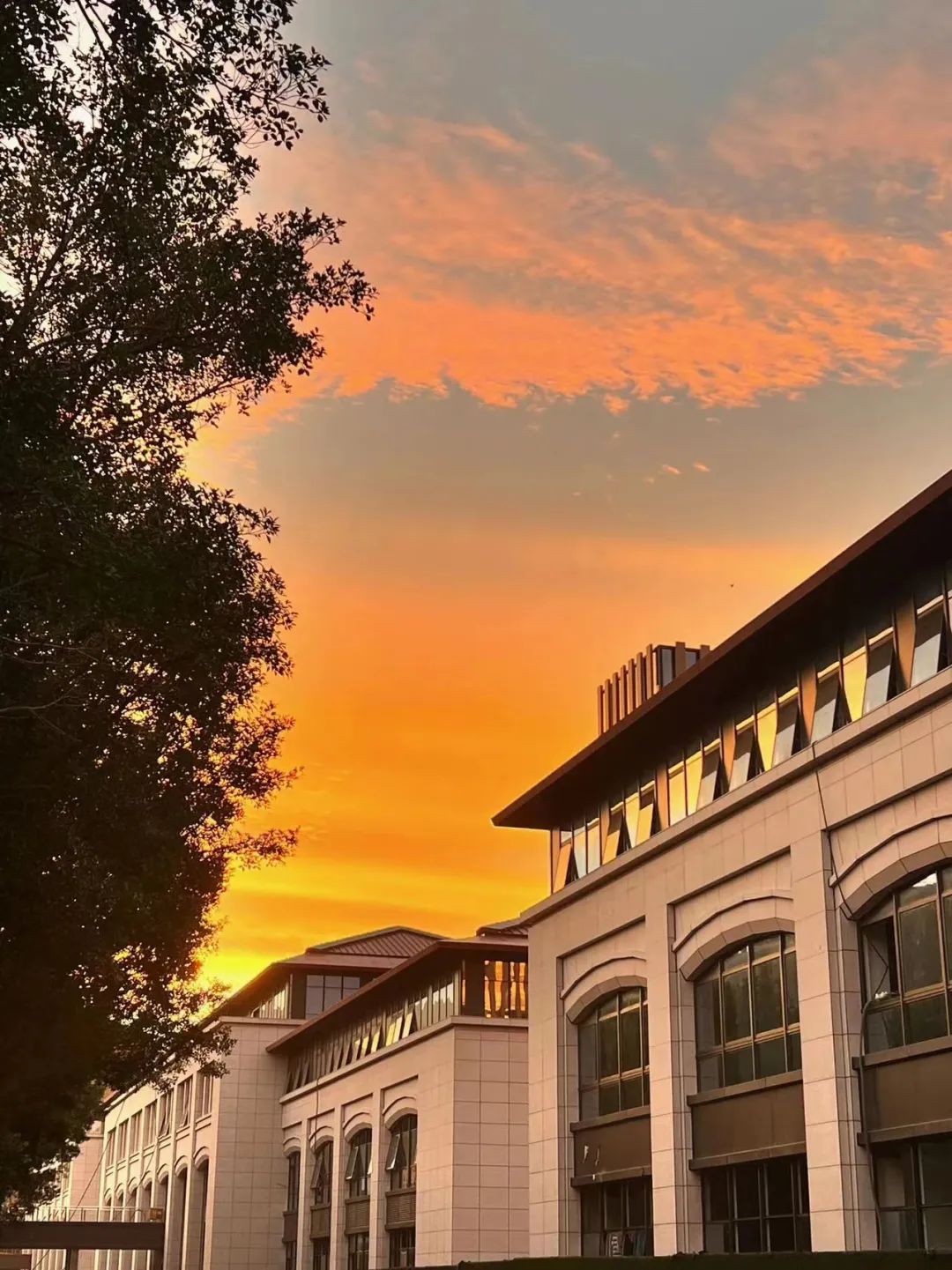 朝阳透过教学楼的玻璃窗