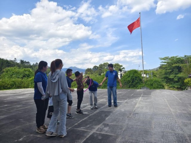 图为支教队员与小学生们合作进行“一圈到底”游戏。大学生云报通讯员 王鹏辉 摄