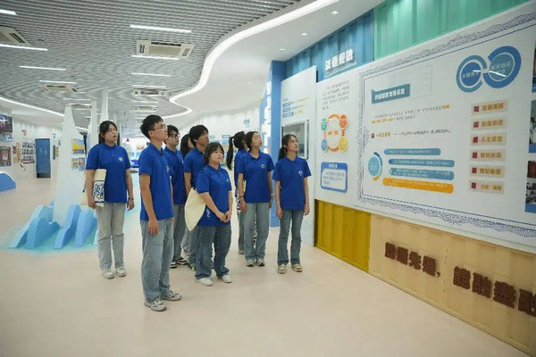 在平潭国际南岛语族研究基地,平潭国际南岛语族研究院副院长许桂荣带领成员们学习南岛语族的起源和发展,了解南岛语族对两岸文化认同起到的重要意义。