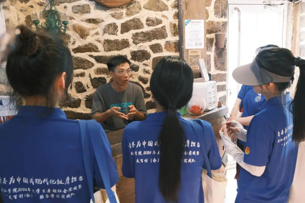 北港村妇联主任高利妹向实践队分享了北港村是如何利用原始元素发展成为文创产业的宝贵经验。在谈话中实践队还了解到,2015年,来自台湾的文创团队在踏入平潭北港村的那一刻便感受到了前所未有的亲切与共鸣。这份跨越海峡的“北港”纽带,让他们决定在此扎根,与北港村共绘文创蓝图。实践队成员们在北港村看到了传统与现代的完美融合,更感受到了两岸人民之间那份割舍不断的文化情缘。