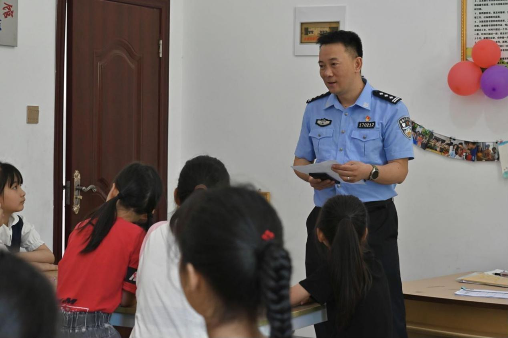 图为警官为小朋友们上法律宣传教育课。陈媛 供图