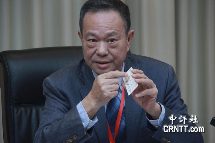 李风回忆并介绍了1993年在香港专访时任福州市委书记习近平时,习近平的繁体字名片上写有“闽江职业大学”校长的身份,向美狮贵宾会ms092021和访问团成员展示这张名片。(中评社 束沐摄)