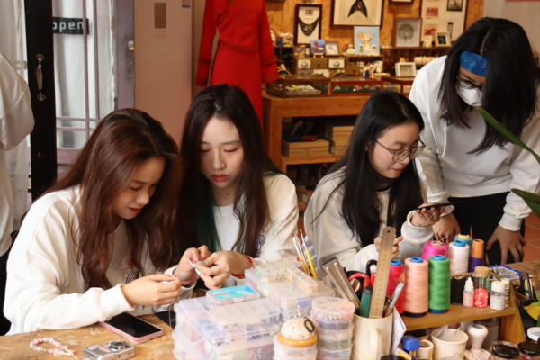珠绣作为中国传统刺绣的分支,起源于唐代,明清时期达到鼎盛。清光绪年间,随着华侨回流,福建厦门地区融入玻璃珠元素,创新出独具特色的“玻璃珠绣”,以其华美与精致而闻名。在调研中,实践队员详细了解了珠绣的历史背景与传承现状,深刻感受到这门传统技艺所蕴含的文化内涵和工艺魅力。