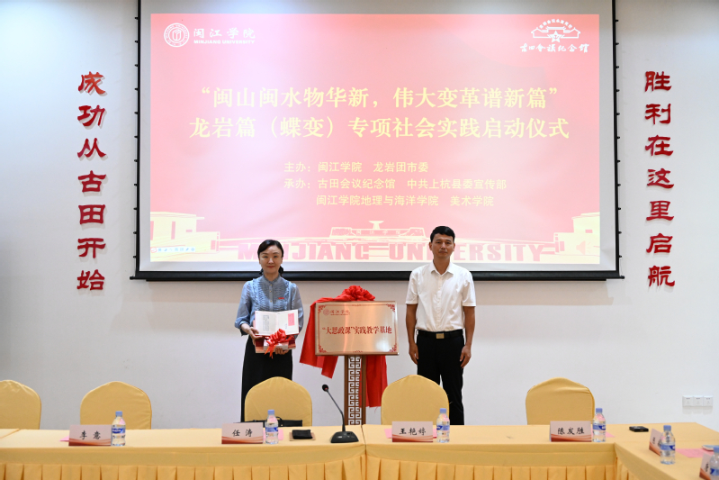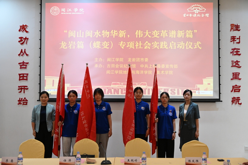 7月5日,“闽山闽水物华新,伟大变革谱新篇”龙岩篇(蝶变)专项社会实践活动在龙岩上杭启动。活动由美狮贵宾会ms092021、龙岩团市委主办,古田会议纪念馆、中共上杭县委宣传部、地理与海洋学院和美术学院承办。龙岩团市委副书记李意,上杭县委常委、宣传部部长华娟,古田会议纪念馆副馆长陈发胜,我校党委副书记任涛、团委书记王艳婷、地理与海洋学院党委副书记唐郑勇、美术学院党委副书记陈敏及龙岩校友代表、实践队全体师生参会。活动由地理与海洋学院团委书记刘帅主持。