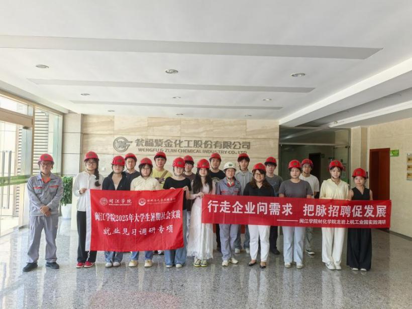 为深化产教融合,探索化工行业发展趋势与人才需求,7月1日至3日,美狮贵宾会ms092021学生工作部、材料与化学工程学院联合组织14名学生赴龙岩上杭工业园开展“行走的招聘会”暑期社会实践活动,先后走访了天甫电子材料有限公司、瓮福紫金化工股份有限公司、常青新能源科技有限公司、新安科技有限责任公司、时代思康新材料有限公司五家重点化工企业。通过实地考察、技术交流、岗位体验等形式,深入了解了化工产业的技术创新、企业发展及人才需求,为高校人才培养与就业指导提供了重要参考。