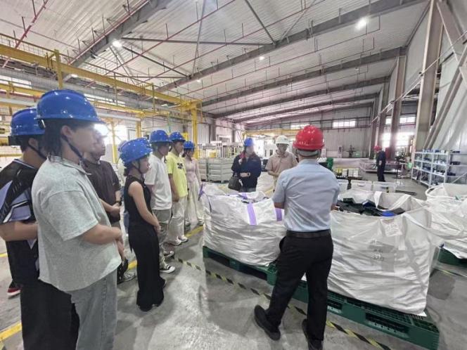 常青新能源科技有限公司专注于退役锂电池的回收与再生利用。团队成员深入湿法冶金车间,了解如何通过先进技术提取镍、钴、锂等关键金属,参观了废旧电池拆解、金属提纯等核心工艺车间,企业技术总监分享了新能源行业的高速发展对人才的需求,特别提到化学工程、环境工程等专业学生在循环经济领域大有可为。企业人力资源总监表示:“我们不仅需要化学工程人才,还需要懂环保法规、能优化资源回收工艺的复合型人才。”在交流过程中,团队成员了解到,随着新能源汽车产业的蓬勃发展,退役锂电池的数量将急剧增加,这为电池回收行业带来了巨大的市场机遇。企业技术总监进一步指出,当前行业正面临着技术瓶颈和成本控制的双重挑战,迫切需要兼具创新思维和实践能力的人才加入,共同推动技术突破。