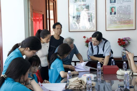 (实践队师生在闽侯县泽江张氏宗祠查阅张氏族谱)