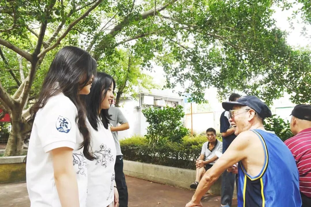 ▲学生们在公园和洋中村民交流