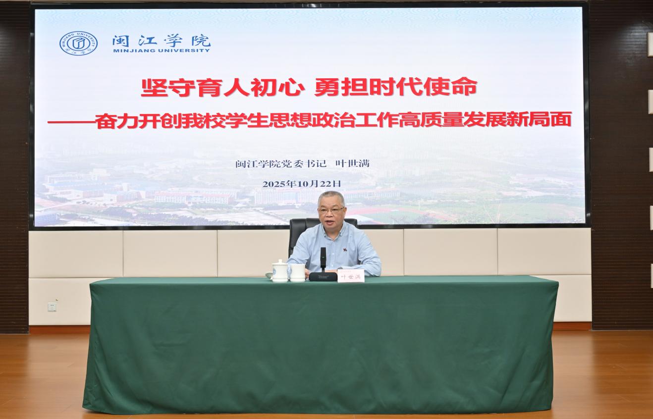 叶世满作题为《坚守育人初心勇担时代使命——奋力开创我校学生思想政治工作高质量发展新局面》的专题报告。他带领全体思政干部深入学习习近平总书记关于思想政治工作的重要论述和对学校的重要讲话重要指示精神,强调要落实立德树人根本任务,深入推进立德树人机制综合改革,持续完善“一二三四五六七”立德树人新格局,加快推进一流应用型大学建设。他围绕“深刻把握辅导员工作的根本遵循与时代内涵、着力构建精准化精细化的学生工作新体系、全力打造高素质专业化的辅导员铁军”三大维度,系统阐述新时代辅导员队伍的使命担当、实践路径和发展方向,明确要以“六暖工程”和“七个一百”大学生成长计划为抓手,全面推进学校温暖集体建设,切实把思想政治工作做到学生心坎上,努力培养担当民族复兴大任的时代新人。