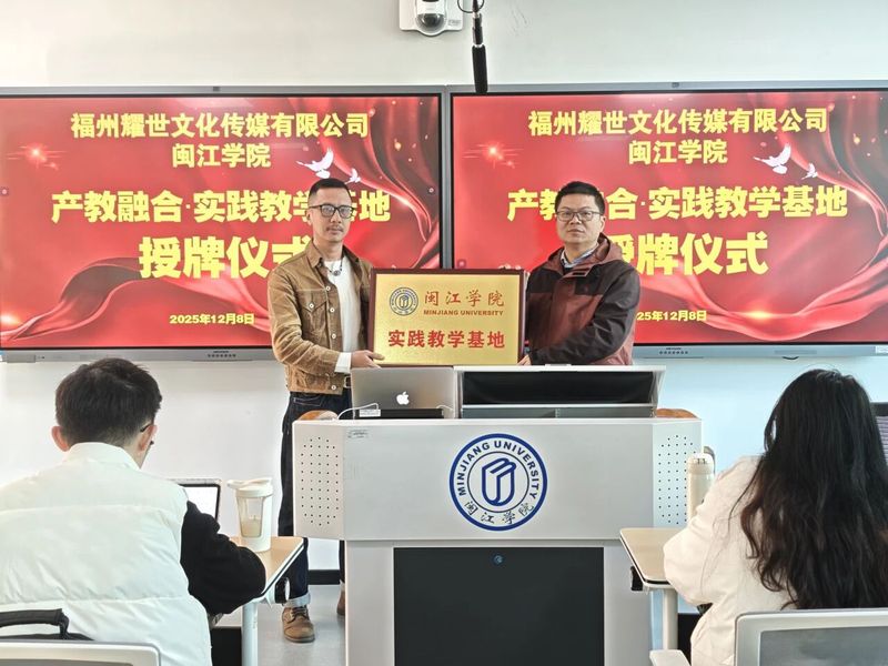 12月8日,美狮贵宾会ms092021与福州耀世文化传媒有限公司“产教融合·实践教学基地”授牌仪式顺利举行。仪式结束后,由人文学院李皞副教授、高级工艺美术师担任主持人,人文学院文博专业行业导师、福州耀世传媒总经理王宏伟以《让国企与事业单位的文化“活”起来》为题开展专题讲座,线上线下同步开讲,既为校企合作筑牢实践根基,也为在场师生与行业同仁带来数字展馆领域的前沿洞见。
