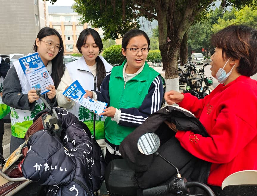 志愿者以“移动宣传站”形式,分组前往教学楼主干道、走廊通道、教室与自习室门外等重点区域,主动面向来往师生、保安及其他校园工作人员开展面对面、互动式的安全知识宣传。活动中,志愿者借助自主设计的海报和宣传册,结合真实案例,生动讲解电动车规范停放与充电、应急疏散路线识别等消防安全知识,并现场解答疑问,提升师生的安全意识和自救能力。同时,在教学楼周边人车交汇区域,志愿者也积极开展交通安全宣传,对过往行人进行引导,及时提醒并纠正违规停车行为,帮助维护道路畅通与校园交通秩序。