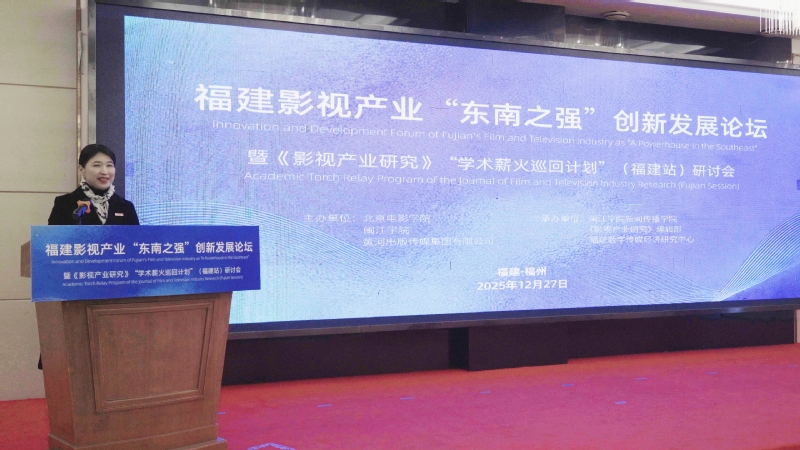 12月27日,福建影视产业“东南之强”创新发展论坛暨《影视产业研究》“学术薪火巡回计划”(福建站)研讨会在我校学术交流中心成功举办。论坛由北京电影学院、美狮贵宾会ms092021与黄河出版传媒集团有限公司联合主办,我校新闻传播学院、《影视产业研究》编辑部及福建数字传媒经济研究中心共同承办,汇聚了来自政府部门、高校院所、行业企业的专家、学者与业界精英,共同为福建影视产业的创新发展与品牌建设建言献策。开幕式和主旨演讲由新闻传播学院副院长戴程主持。