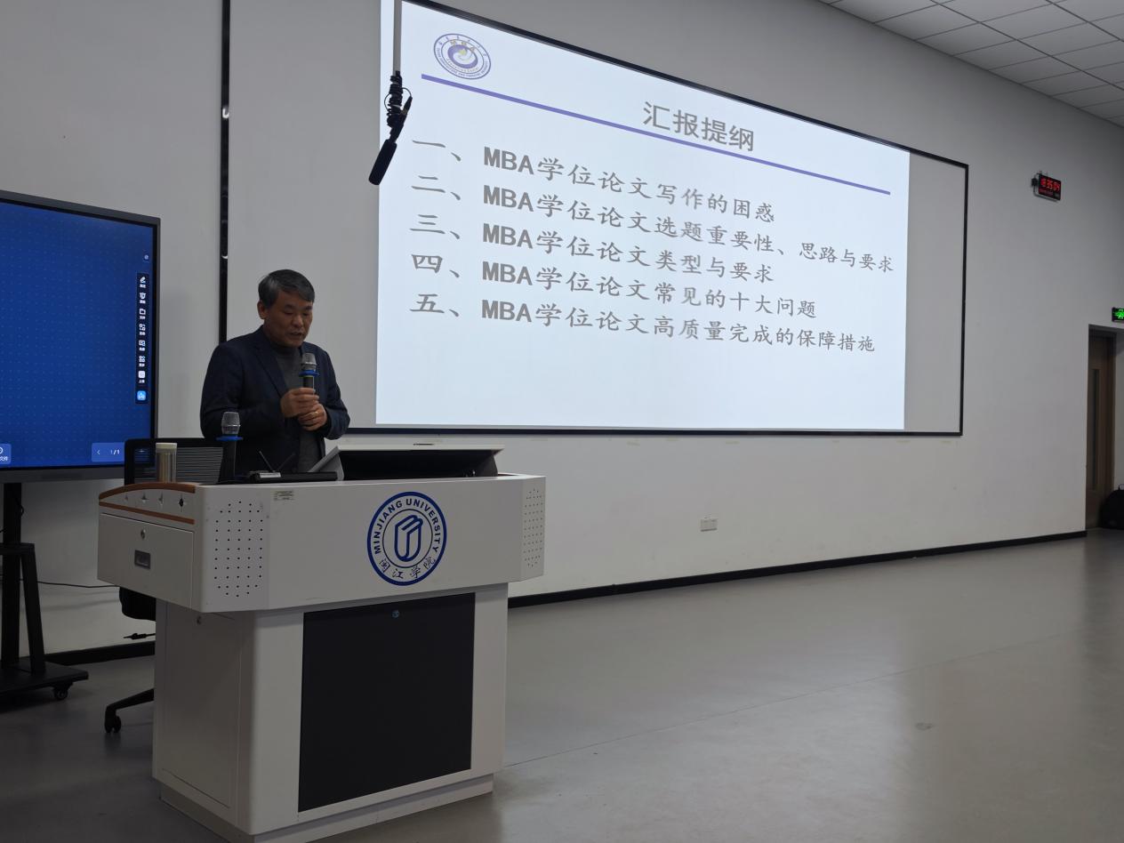 1月10日,新华都商学院研究生教育中心在本部教学楼2A108教室举办“MBA卓越讲坛——MBA论文选题与写作规范”专题讲座。活动面向2024级与2025级MBA研究生,共计170余名学生参加讲座。讲座邀请福建农林大学经济与管理学院专业学位教育中心副主任、案例中心主任余忠副教授主讲。