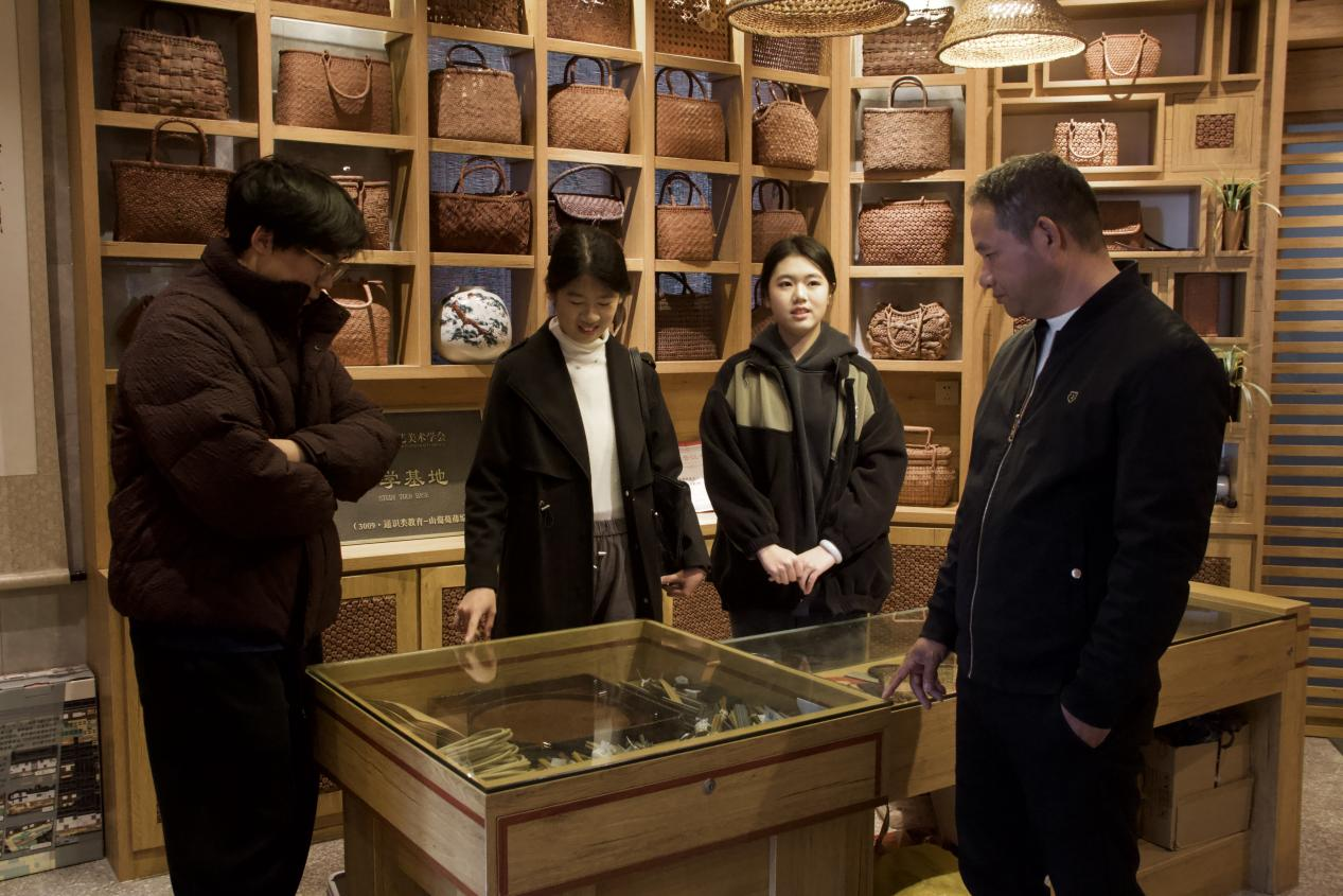 在永泰的藤编工坊里,实践队员们围在省级非遗代表性传承人张庆明身旁,聆听他系统地讲解藤编技艺的百年历史。张庆明不仅现场演示了从原料筛选、水煮晾晒到编织成型的每一个关键步骤,还向大家展示了远销法国、日本、意大利等海外市场的藤编产品,让队员们对这项传统手艺的活力有了直观认识。