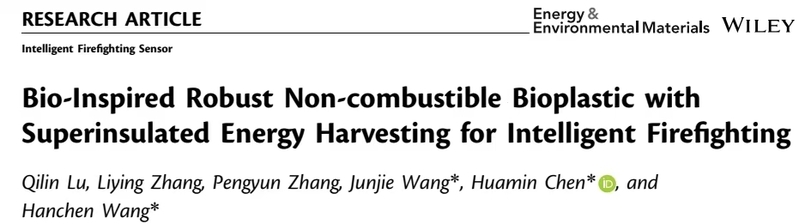 近日,我校服装学院卢麒麟教授在国际知名期刊Energy & Environmental Materials (IF: 14.1,中科院一区Top期刊)上发表题为《Bio-Inspired Robust Non-combustible Bioplastic with Superinsulated Energy Harvesting for Intelligent Firefighting》的研究论文。