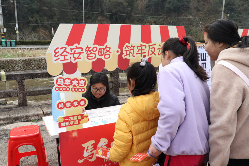 在文化体验集市上,实践队设立“经安智略·筑牢反诈防线”主题摊位,队员们结合专业特色开展金融反诈科普活动,介绍主要国际货币及汇率知识,通过汇率换算、防诈问答等小游戏,帮助当地居民巩固货币常识,提升防诈意识,树立正确金钱观。