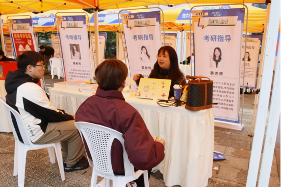 活动紧扣考研复试调剂的“黄金窗口期”,并同步拓展国际升学视野,精心设置了涵盖复试指导、调剂信息、留学规划、学术背景提升等全链条需求的八大功能专区,延续“就业集市”一站式、互动式的服务特色。据统计,活动累计吸引近400名学生到场咨询,发放备考资料300余份,现场针对性答疑超200人次,有效缓解了学子的升学焦虑。